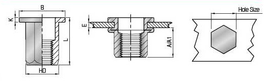 | 螺纹 Thread | 编号 P/N | T(GRIP RANGE) MIN MAX | A Ref | +0.1 0 | HD +0.07 ■OJ | B | K ±0.15 | L ±0.30 |