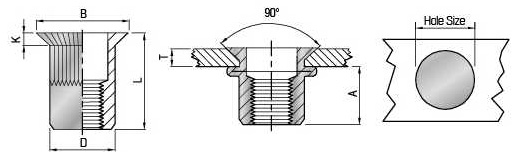 Hole Size +0.1 0 | D +0.07 -0.1 | B | K ±0.15 | L ±0.30 |