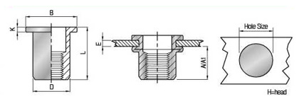 A Ref | Hole Size +0.1 0 | D ♦0.07 -0.1 | B | K ±0.15 | L ±0.30 |