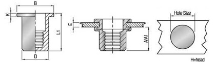 | I UNIT(单位): | mm 编号 P/N | T(GRIP RANGE) MIN MAX | A Ref | F=RaV H=Head/ R=RoundZ B=Body/ C=Close/ S=Steel Hole Size D K L 7 B ±0.15 ±0.30 | ||||