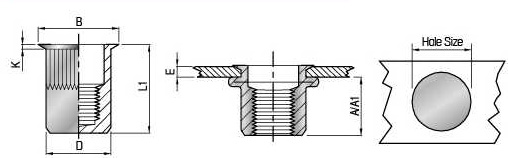 | 螺纹 Thread | 编号 P/N | T(GRIP RANGE) MIN MAX | A Ref | Hole Size +0.1 0 | D 40.07 -0.1 | B | K ±0.15 | L ±0.30 |